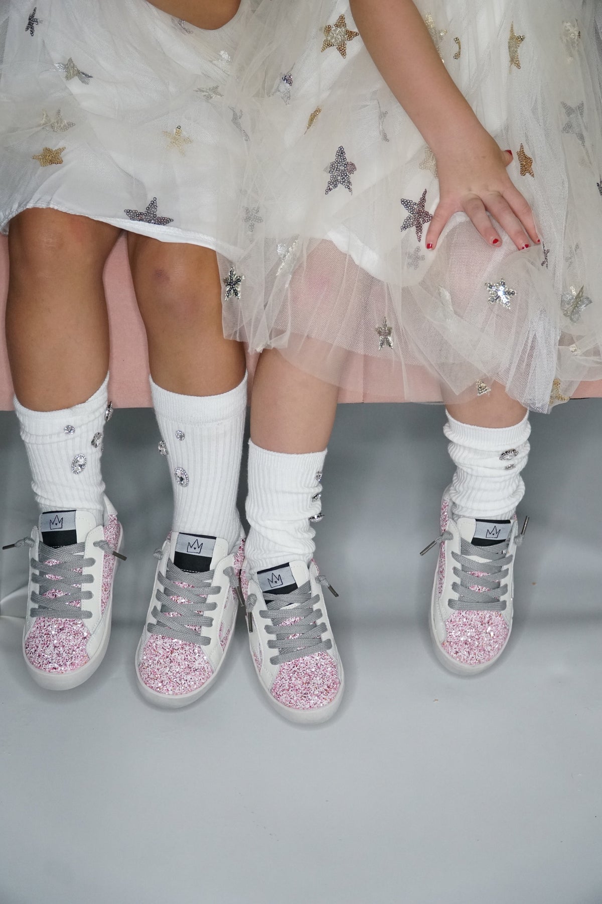 A little sparkle goes a long way — and the Morgan Mae Rhinestone Socks in White are proof. These charming ankle socks are sprinkled with delicate rhinestones for a touch of shimmer that shines with every step.